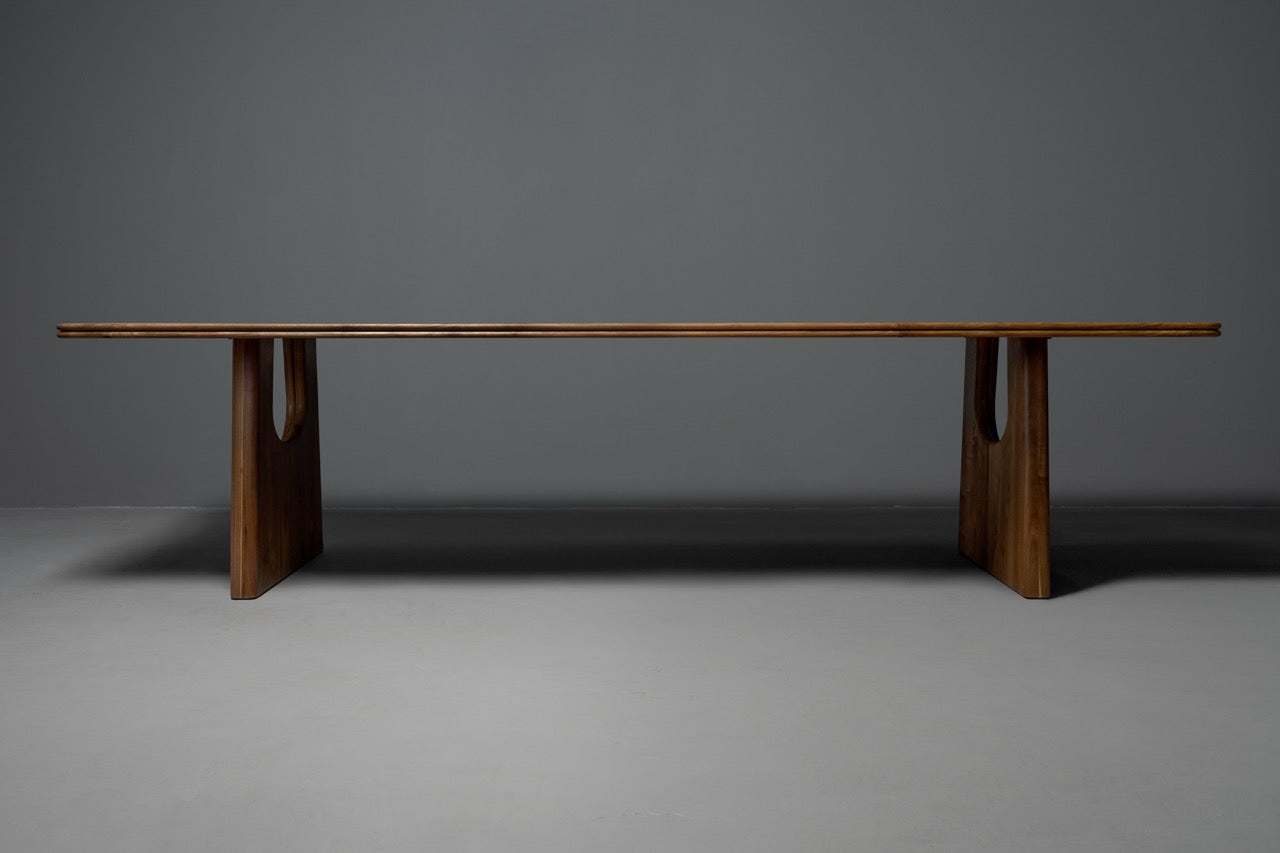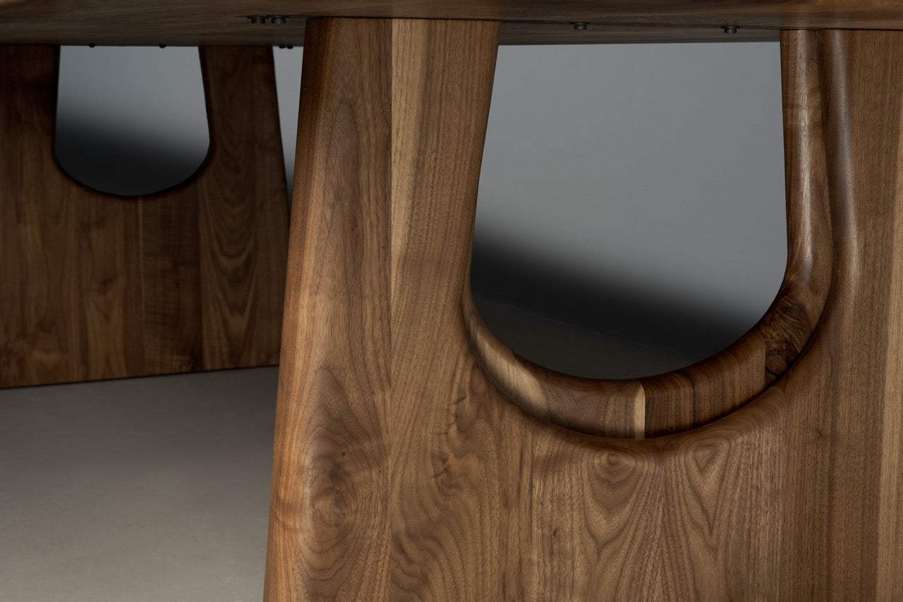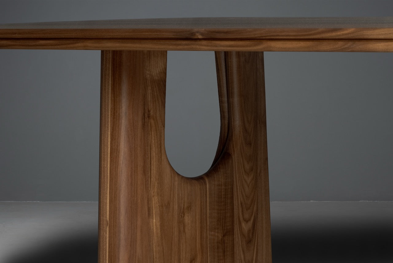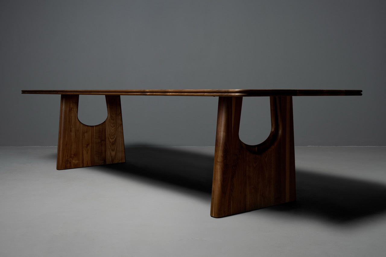 The flowing silhouette combines midcentury modernism with Scandinavian restraint, creating something that feels both familiar and completely fresh. Those sculpted catenary arches aren't just stunning to look at, they're masterfully engineered from two layers of pressed hardwood that form incredibly strong 3-inch thick legs positioned to maximize legroom for everyone around the table.