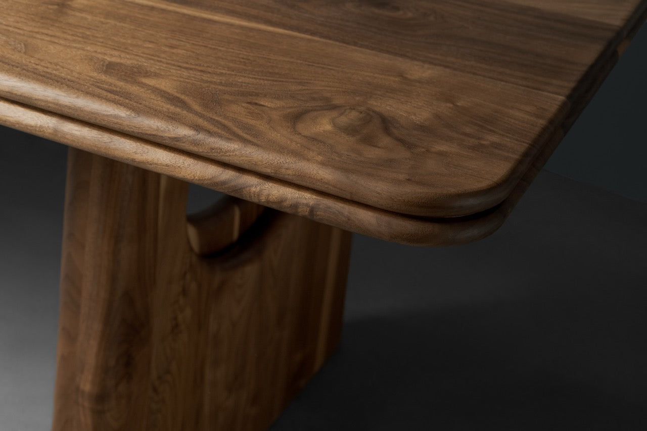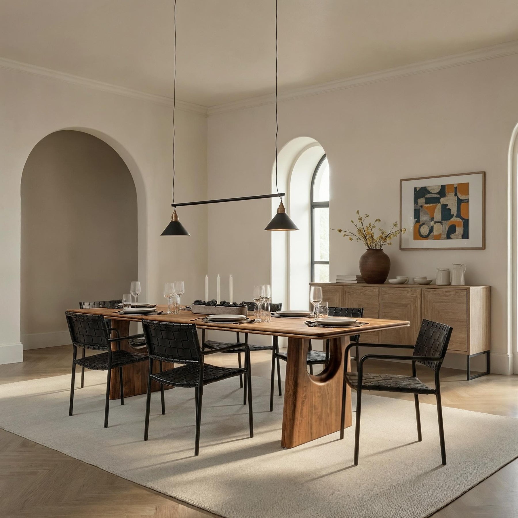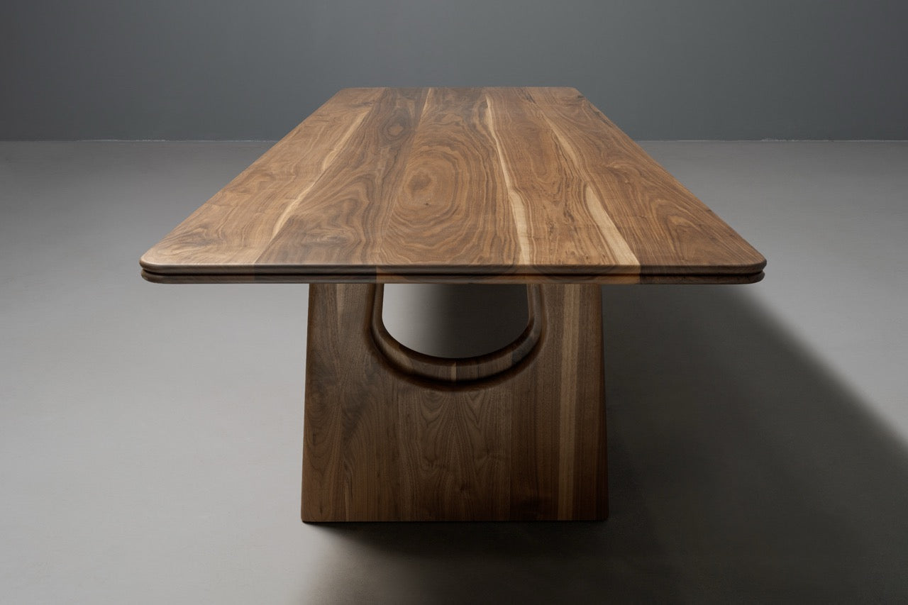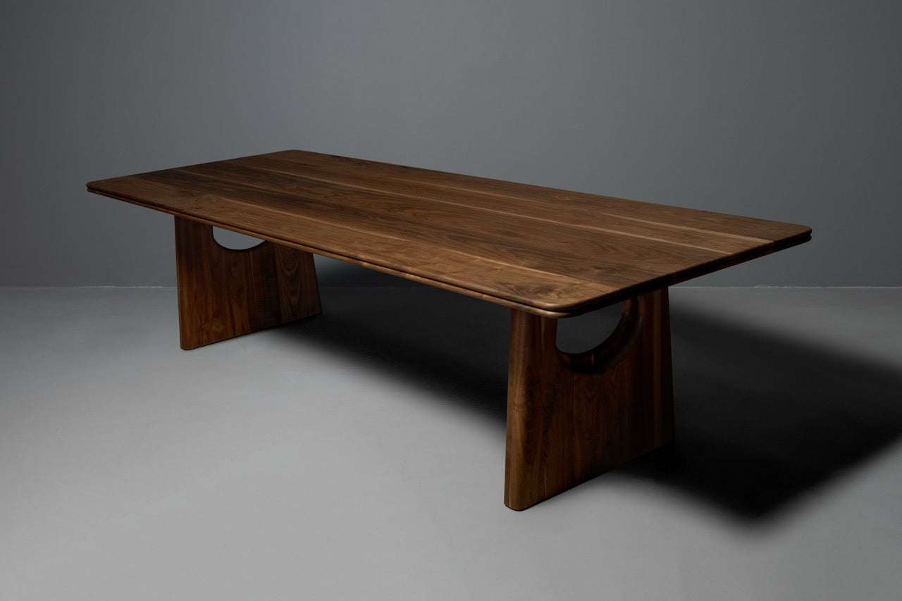 The flowing silhouette combines midcentury modernism with Scandinavian restraint, creating something that feels both familiar and completely fresh. Those sculpted catenary arches aren't just stunning to look at, they're masterfully engineered from two layers of pressed hardwood that form incredibly strong 3-inch thick legs positioned to maximize legroom for everyone around the table.