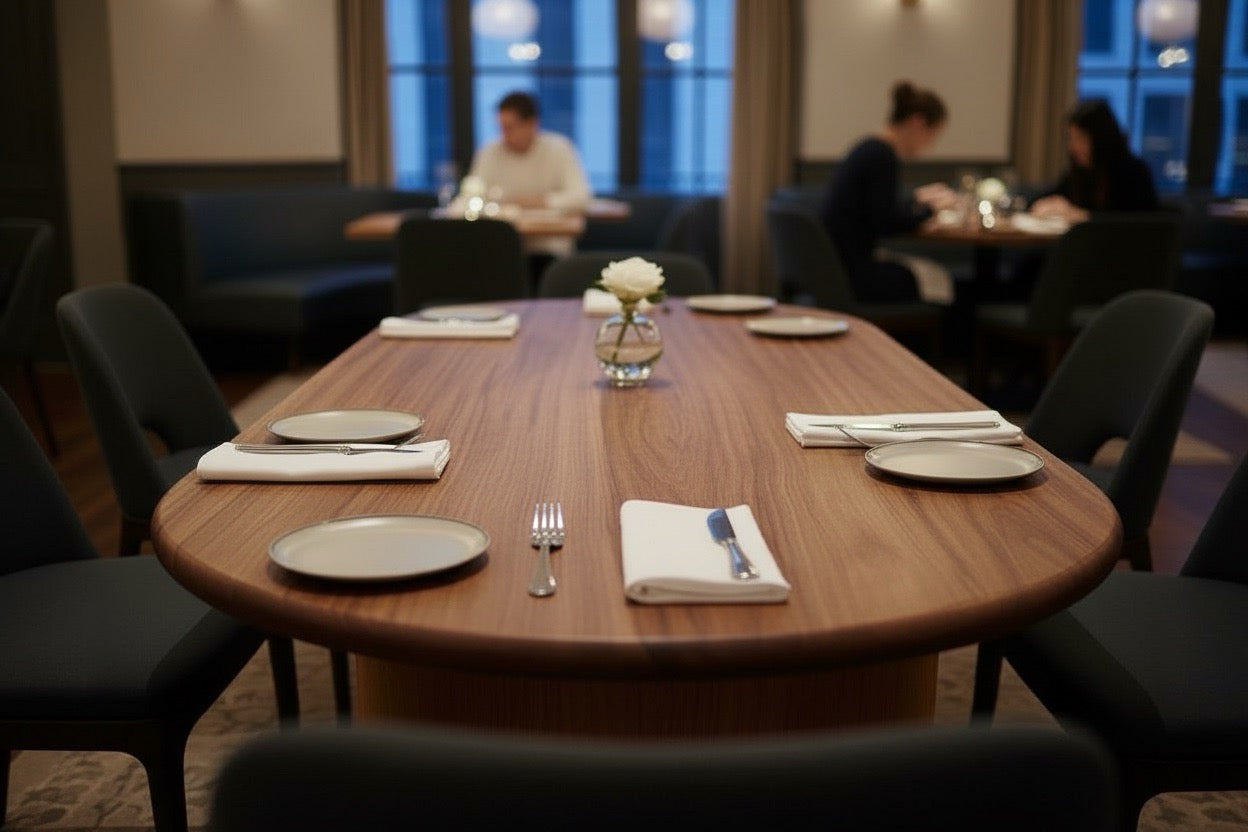 Tables anchor the rituals that define daily life. This modern wood dining table transforms those moments into something worth noticing, combining sculptural presence with the kind of craftsmanship that makes guests run their hands along the edges.